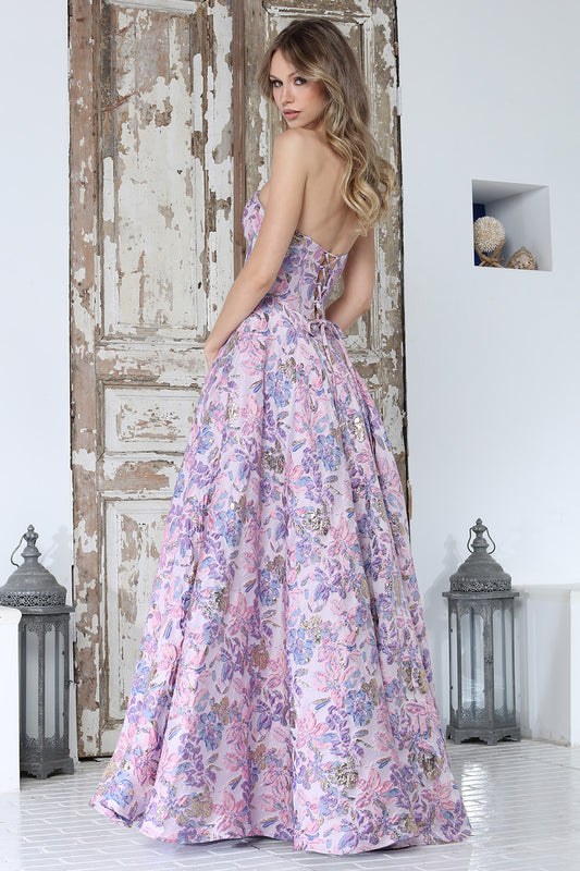Vestido Ajustado con Corsé Estampado de Floral Glitter (Varios Colores)