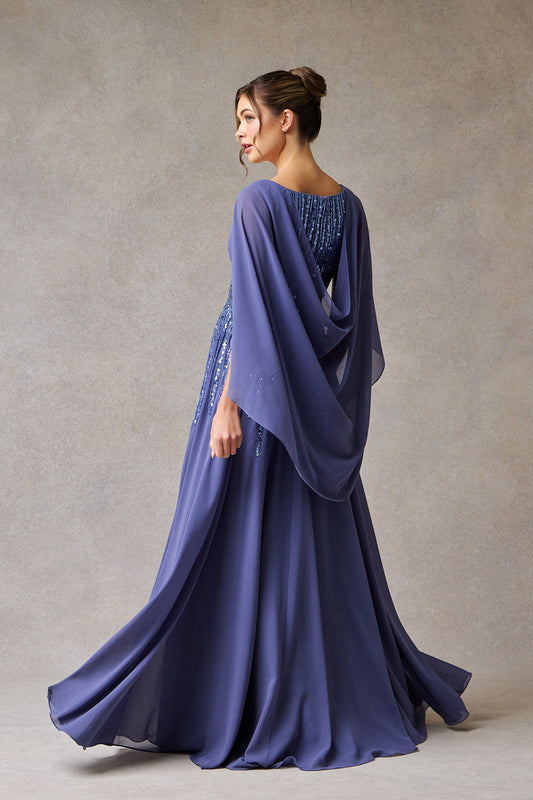 Vestido de Chiffon Bordado en Corte A con Mangas y Capa Corta (Varios Colores)
