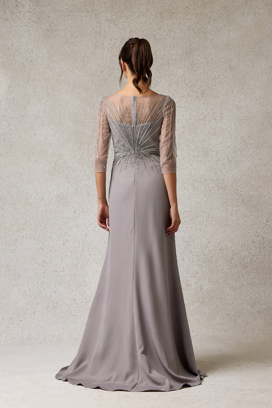 Vestido de Noche Ajustado con Cuentas (Dos Colores)