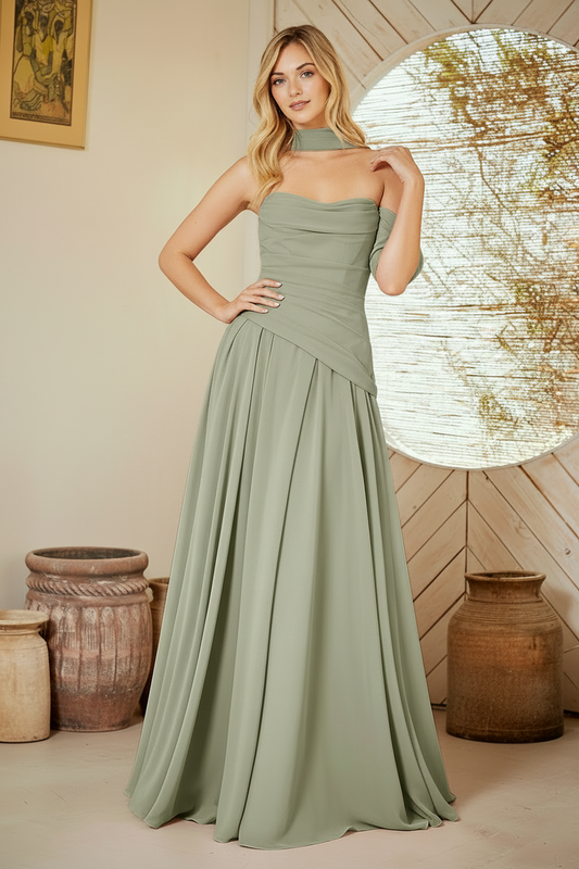 Vestido Corte recto Escote de un solo hombro, corpiño fruncido y panel de gasa drapeado en los hombros. (Varios Colores)