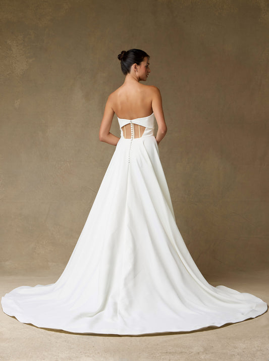 Vestido de Novia de Satén en Corte A, Escote Corazón con Bolsillos Laterales, Color Off White