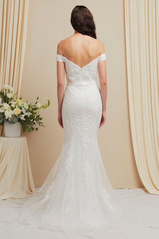 Vestido de Novia Corte Sirena al Hombro Escote Corazón de Tul Bordado con Cristales, Color Off White