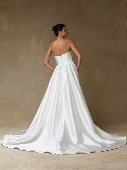 Vestido en línea A sin tirantes y con escote redondo color Off Withe.