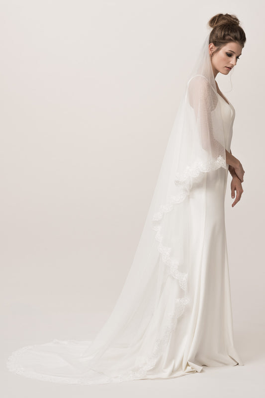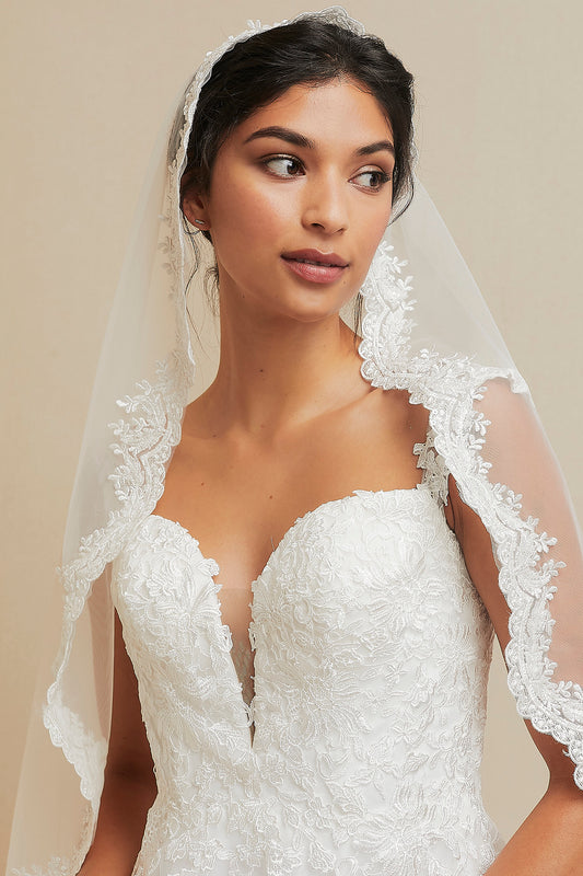Velo de Novia Corto en Capas con Aplicaciones de Cuentas y Lentejuelas, Color Off White