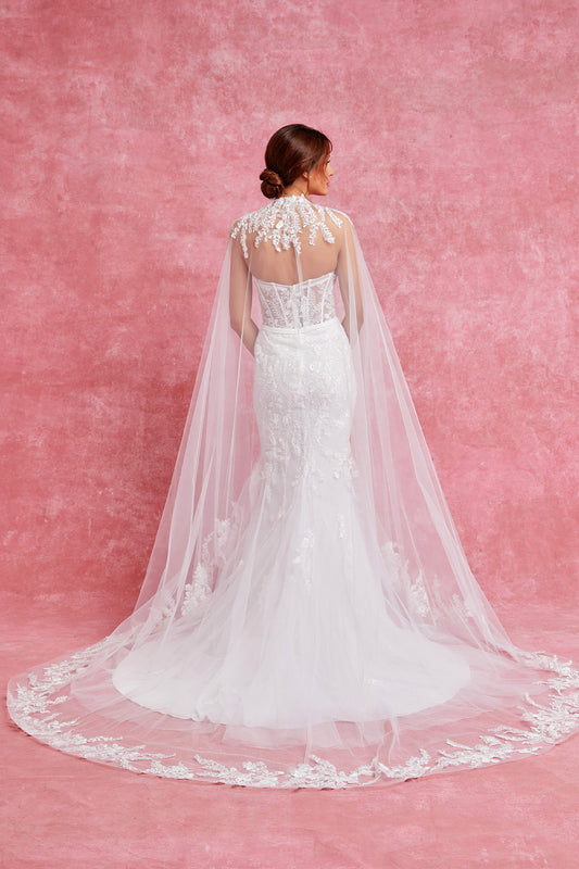 . Vestido de Novia Corte Sirena Con Velo en Capa Color Off White.
