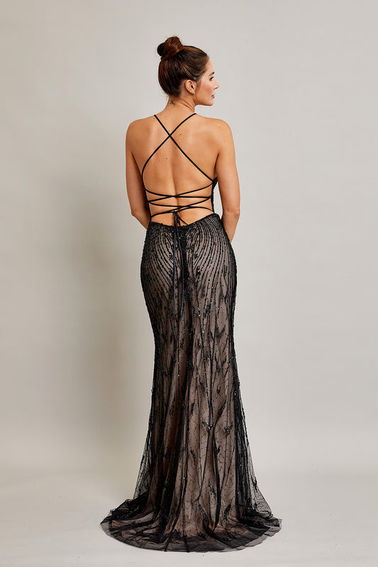 Vestido Corte Sirena Sin Mangas y Espalda Abierta Black Nude.