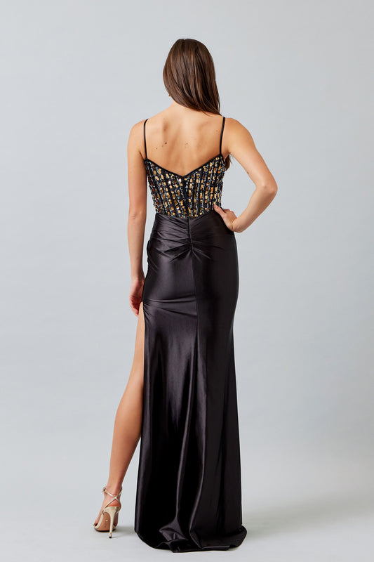 Vestido Corte Sirena y con Abertura con Cuentas Brillantes (Tres Colores)