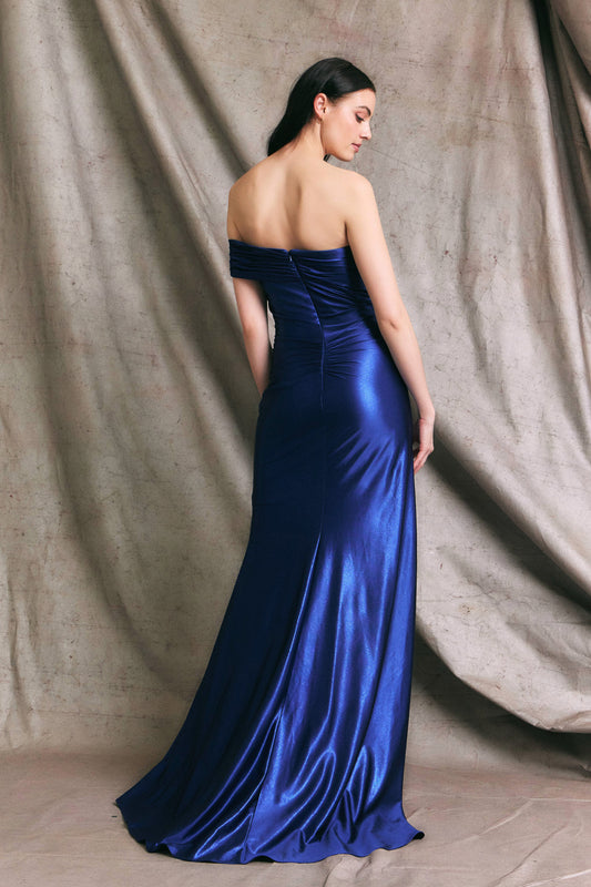 Vestido de Corte Recto, Elástico a un Hombro con Abertura en la Pierna, Colores Navy y y Burgundy