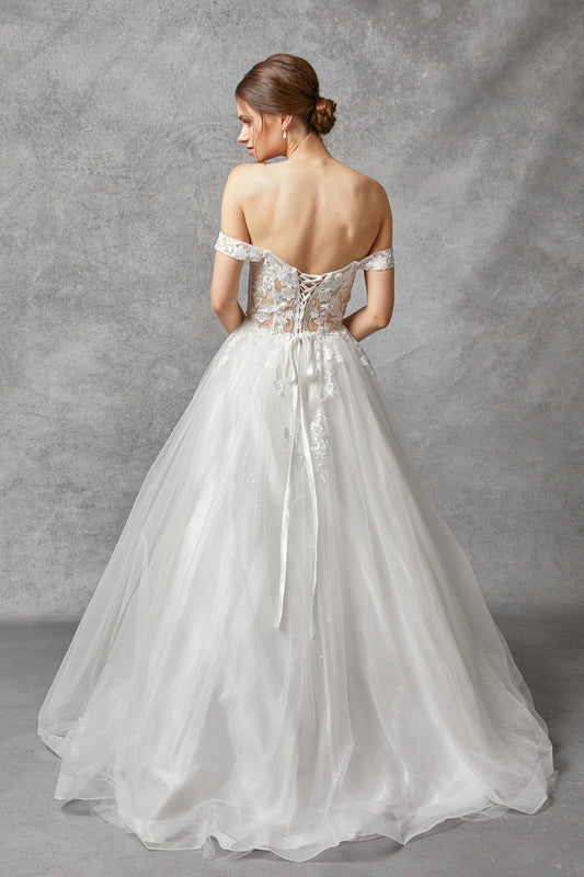 Vestido de Novia con Hombros Descubiertos y Escote de Corazon, Color Off White