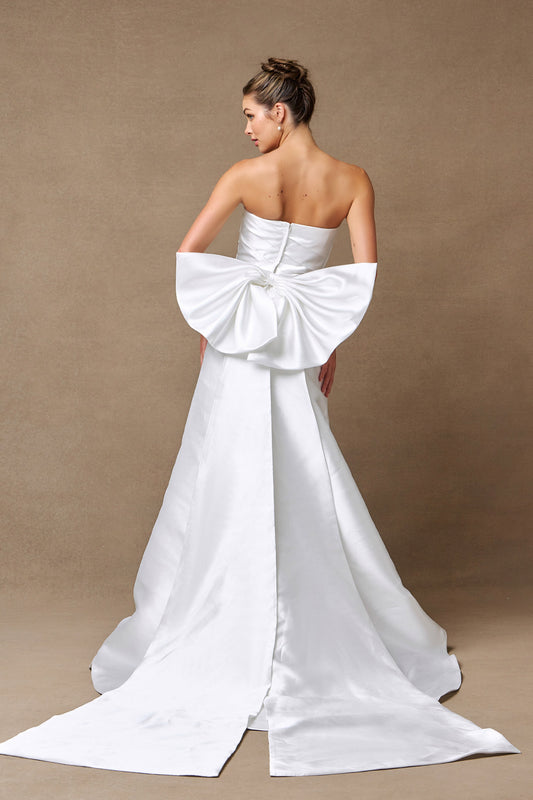 Vestido de novia sirena Charmeuse con faja lazada en la espalda