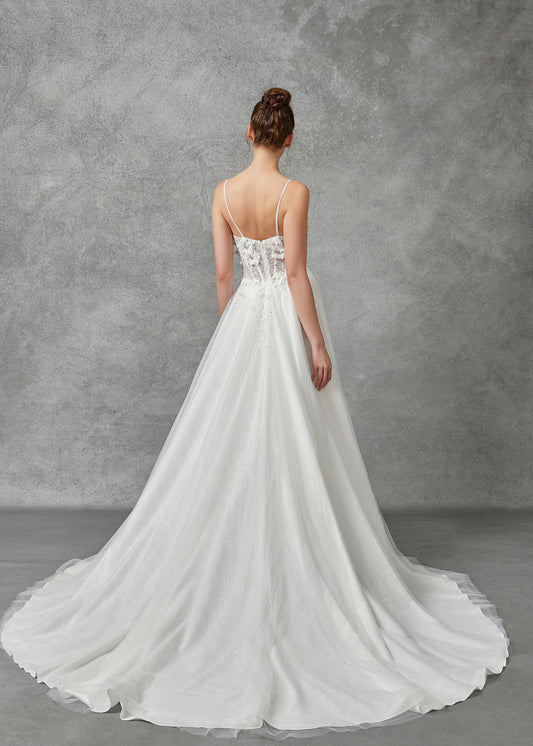 Vestido de Novia, Escote en Pico con Corse y con Tirantes.