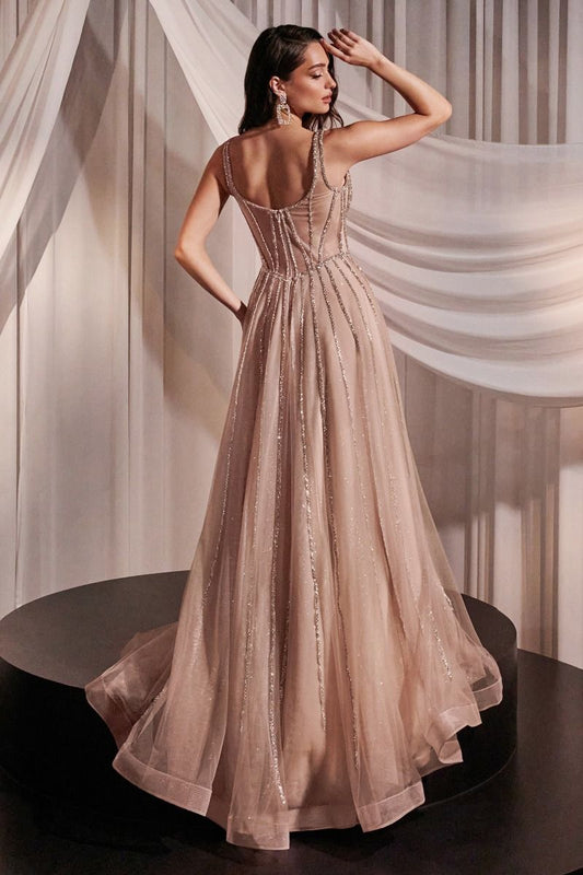 Vestido de Tul a Capas con Decoraciones Color ROSE CHAMPAGNE