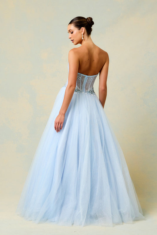 Vestido en Corte en A Sin Tirantes Escote en Forma de Corazón Color Ice Blue.