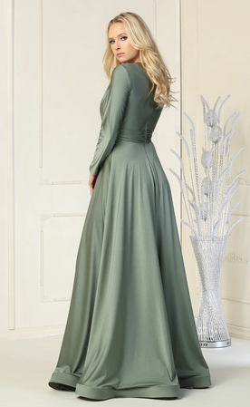 Vestido de dama de honor curvy corte ajustado de tela elástica con un escote sostenido por largos lazos color verde esmeralda