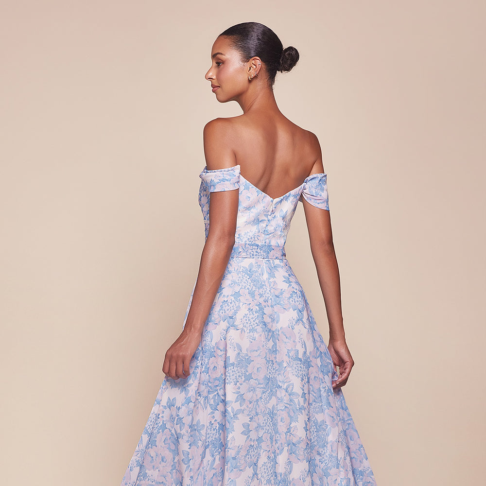 Vestido en Corte A con Corpiño Tipo Corse y Falda Vaporosa, incluye Pashmina (Varios Colores)