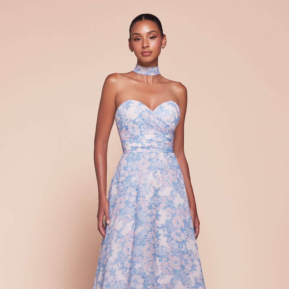 Vestido Corte en A sin Tirantes con Detalle de Moño por Detrás, Colores Lt Pink y Black