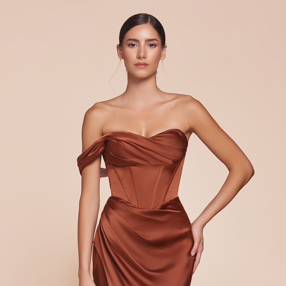 Vestido de Satén con Corpiño Tipo Corsé, Drapeado al Frente con Pashmina (Varios Colores)