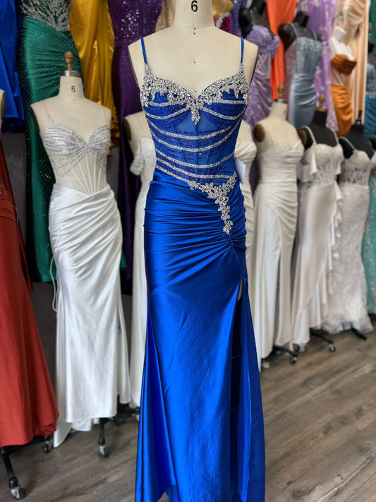 Vestido de satín Corte Sirena y Media Abertura en la Pierna (Varios Colores)