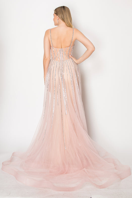 Vestido Corte Recto con Cauda de Tul y efectos brillosos (Dos Colores)