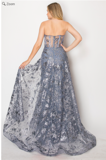 Vestido Estraple con Escote de Corazón con Aplicaciones en Lentejuelas, Color Silver Nude