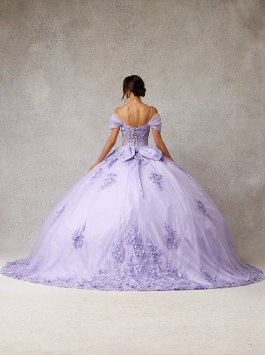 Vestido de Fiesta de Tul con Brillos y Lentejuelas, Escote Corazón, y Lazo Desmontable, Colore Lilac