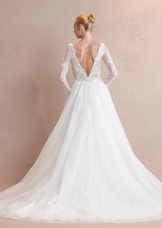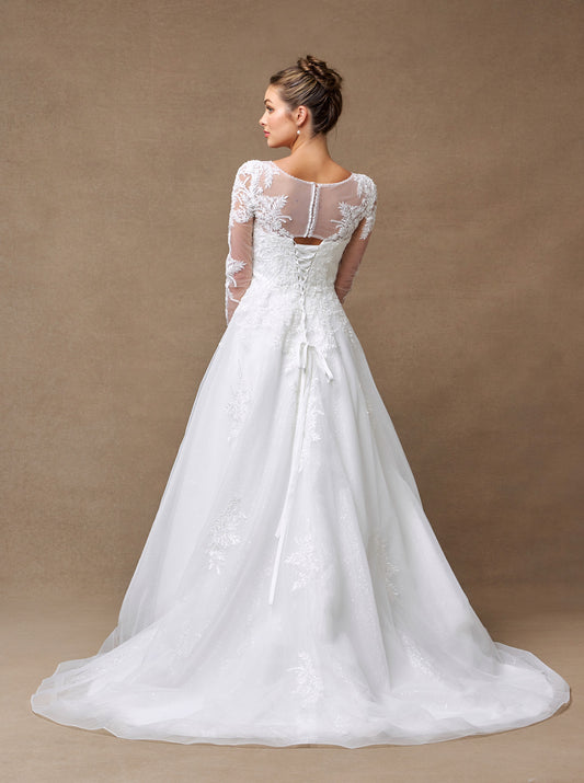 Vestido de Novia Manga Larga en Corte A en Encaje, Color Off White