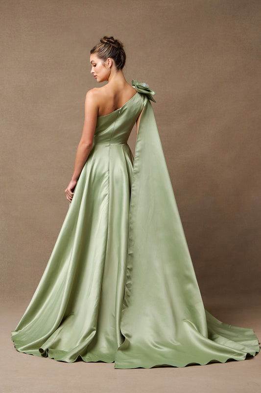 Vestido de Satén en Línea A con Abertura (Varios Colores)