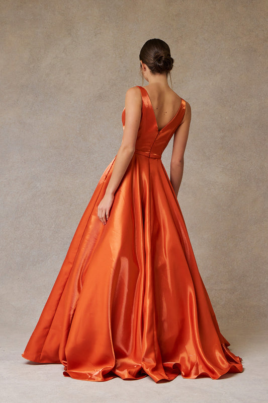 Vestido de Satén en línea A con Cuello V (Varios Colores)