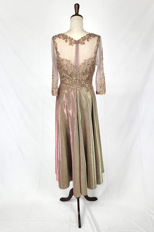 Vestido Corte Midi, Falda de Purpurina con Brillo Bicolor y Corpiño Bordado con Lentejuela (Varios Colores)