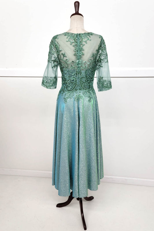 Vestido Midi con Bordados Ornamentales con Lentejuelas y Mangas 3/4 (Varios Colores)