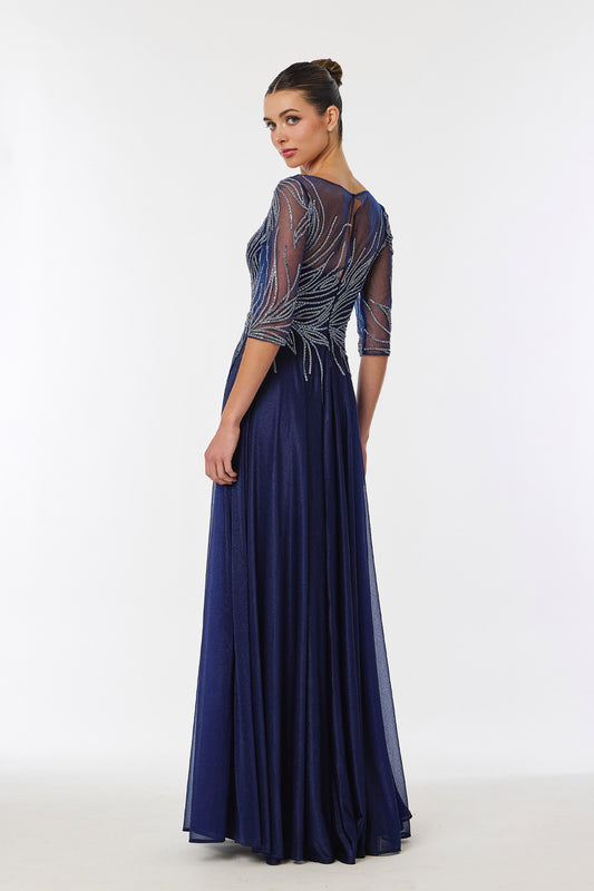 Vestido Largo con Bordado Ornamental con Lentejuelas y Mangas 3/4 (Varios Colores)