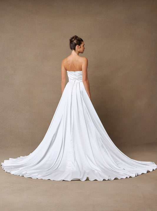 Vestido de Novia Sin Tirantes Escote Corazón y Con Abertura.