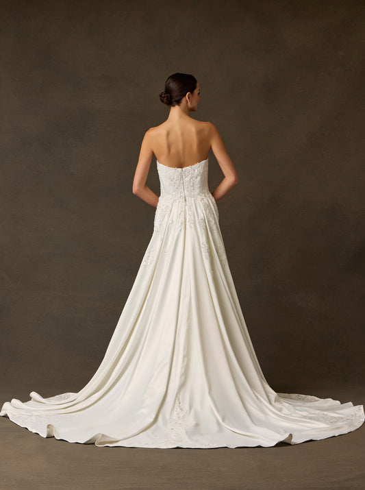 Vetido de Novia en corte A de satén y con Escote Corazon color Off White.