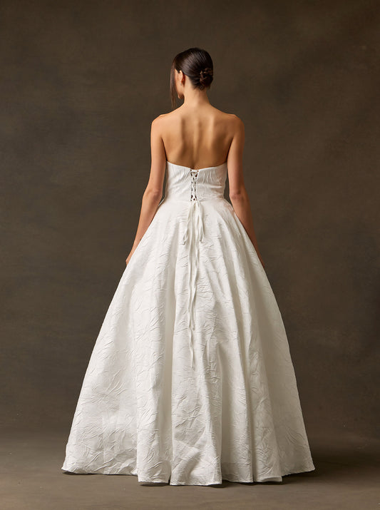 Vestido de Novia de Jacquard Estampado, Sin Tirantes, Escote Corazón, Corte en A y Espalda con Cordones
