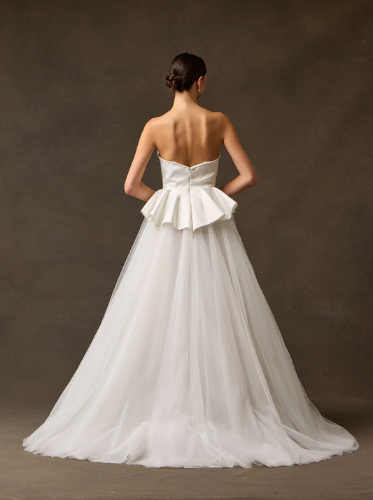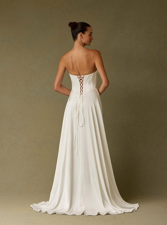 Vestido de Novia Corte en A, sin Tirantes, Escote Corazón, Color Off White