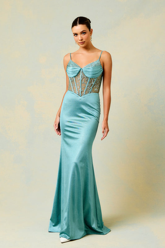Vestido con Corset Semitransparente y Aplicaciones en Lentejuela (Varios Colores)