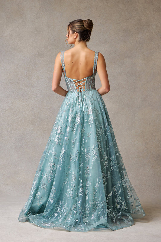 Vestido en A con Bordado en Corsé y Abertura en la Pierna (Varios Colores)