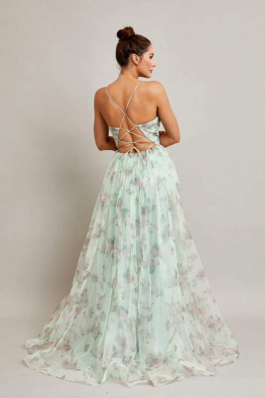 Vestido Recto con Abertura en la Pierna Corsé Semitransparente con Tirantes (Varios Colores)