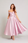 Vestido Corto Con Hombros Fuera En Línea A con Escote Corazón Color Mauve.