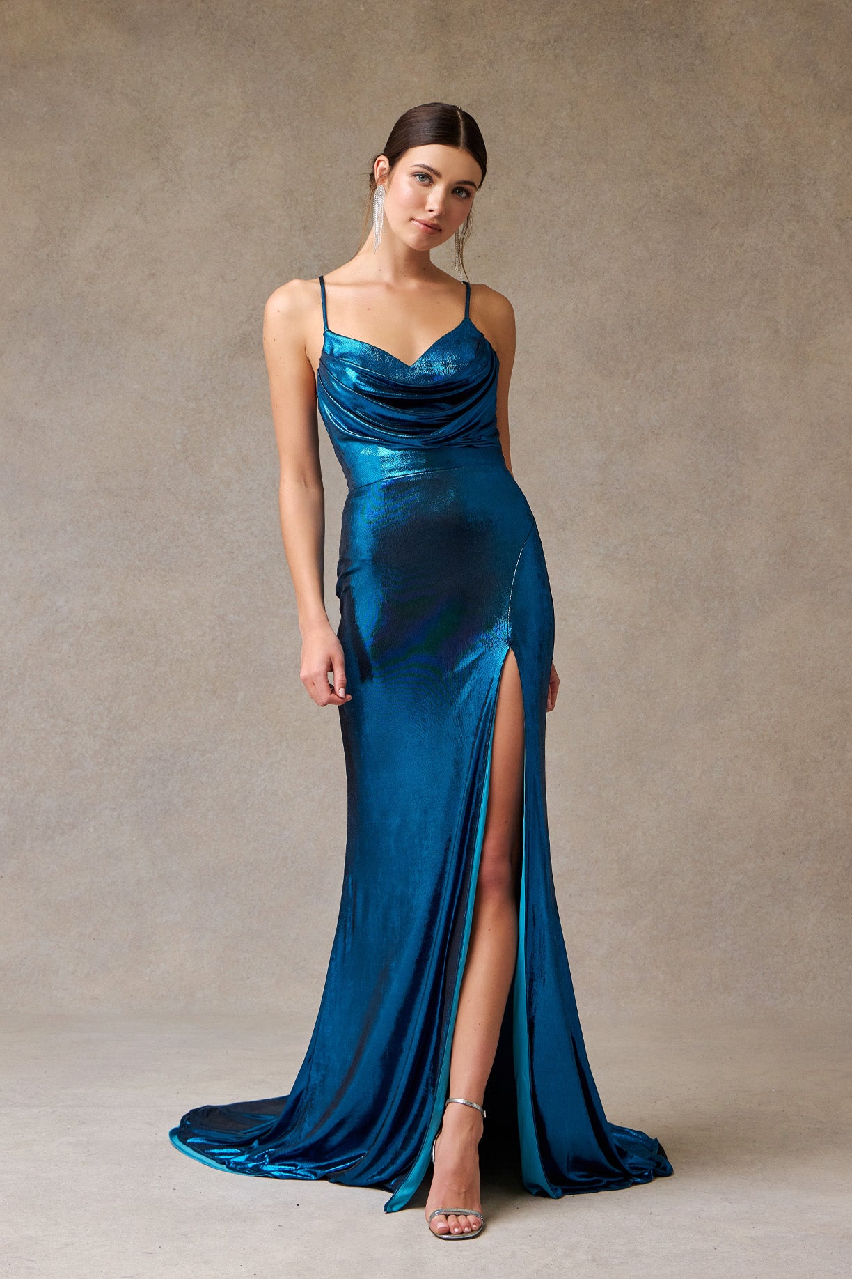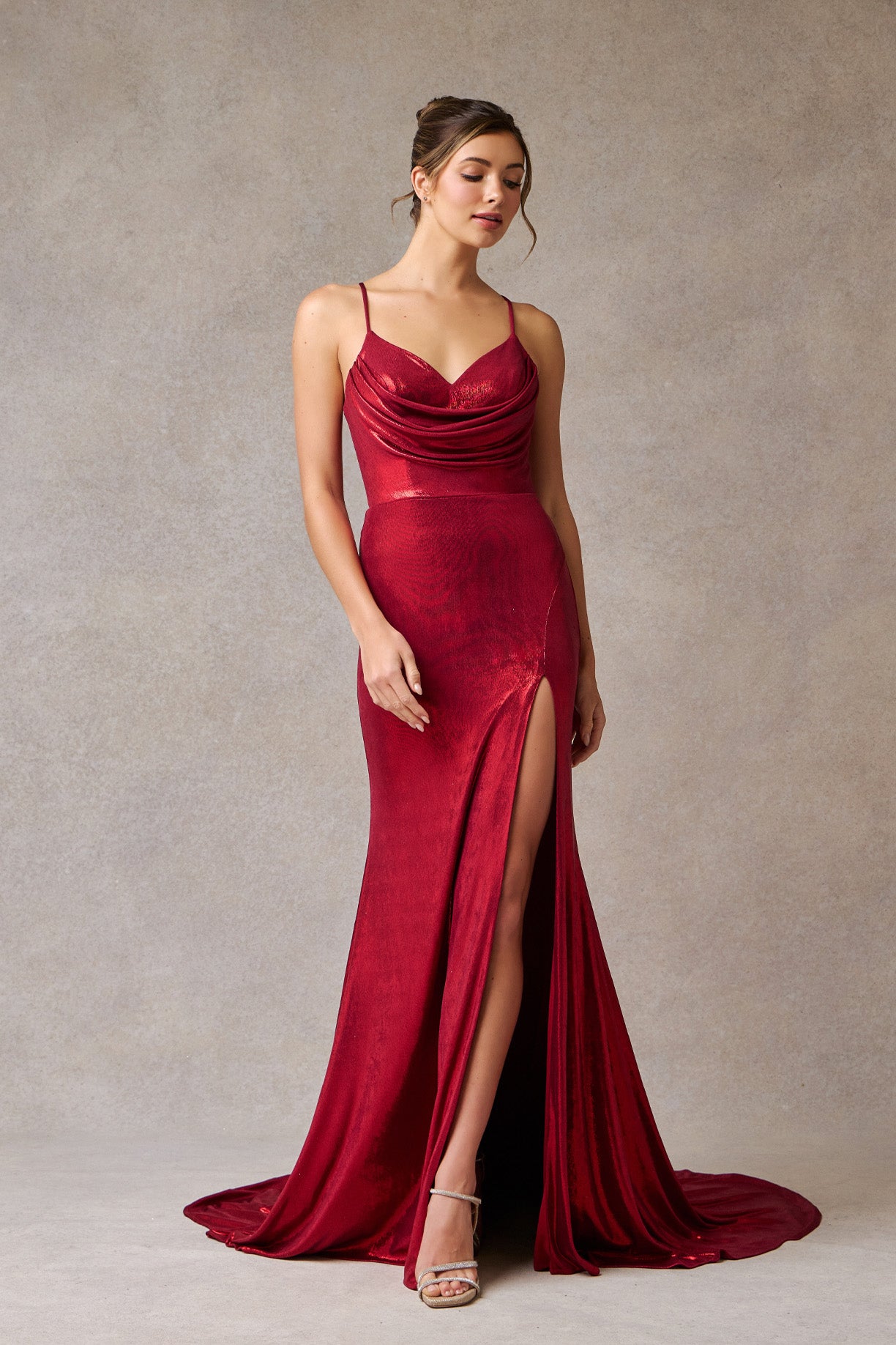 Vestido Crepé Elástico Escote Corazón y Abertura. (Dos Colores)