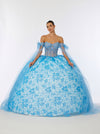 Vestido de Fiesta con Hombros Descubiertos de Tul Bordado con Brillos y Lentejuelas, Color Ice Blue