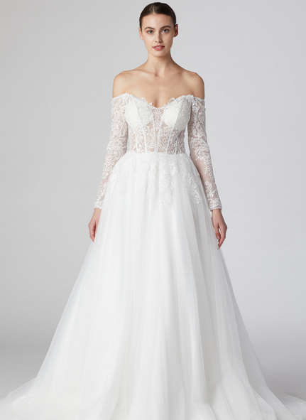 Vestido de Manga Larga, Hombros fuera y cuello en Forma de corazón.