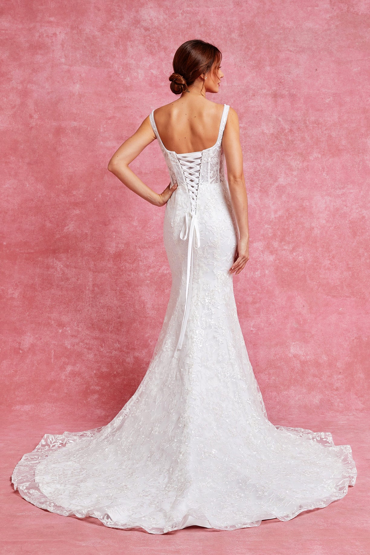 Vestido de Novia Corte Sirena Escote Corazón y Espalda con Cordones.