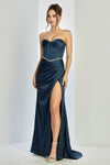 Vestido de Satén Con Detalle de Cristales en la Cintura con Abertura. (Varios Colores)