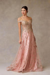 Vestido en Linea A Bordado con Encaje y Lentejuela al Hombro (Varios Colores)