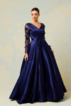 Vestido en Líneas A Con Manga Larga y Cuello en V Color Navy.