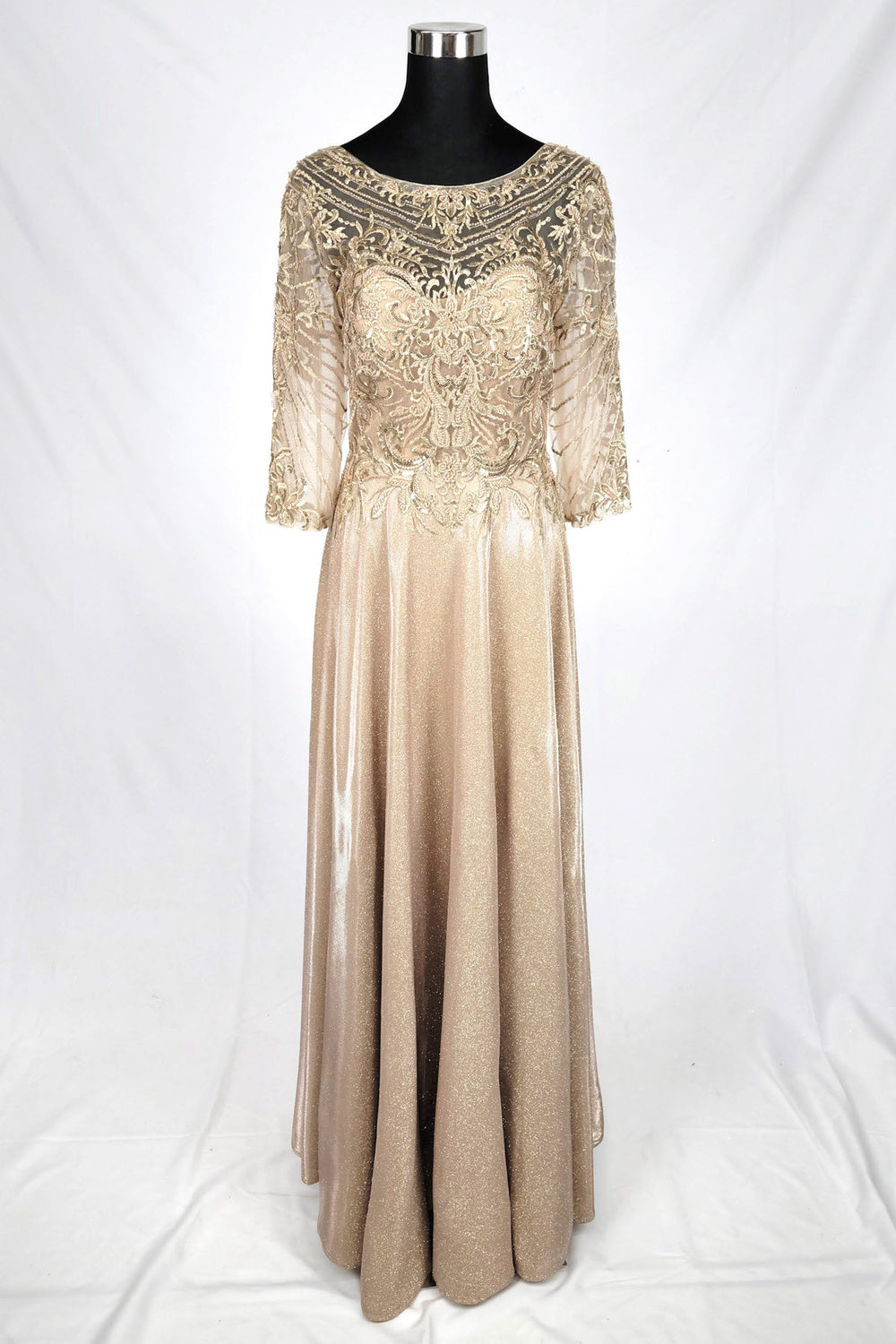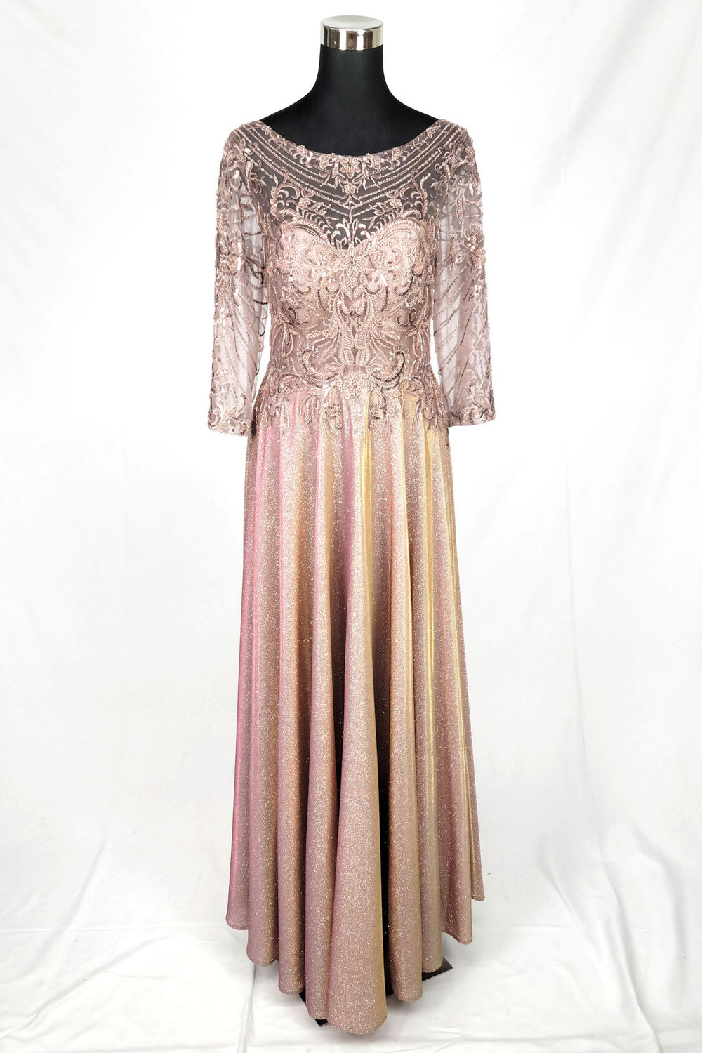 Vestido Largo con Bordado Ornamental con Lentejuelas y Mangas 3/4 (Varios Colores)