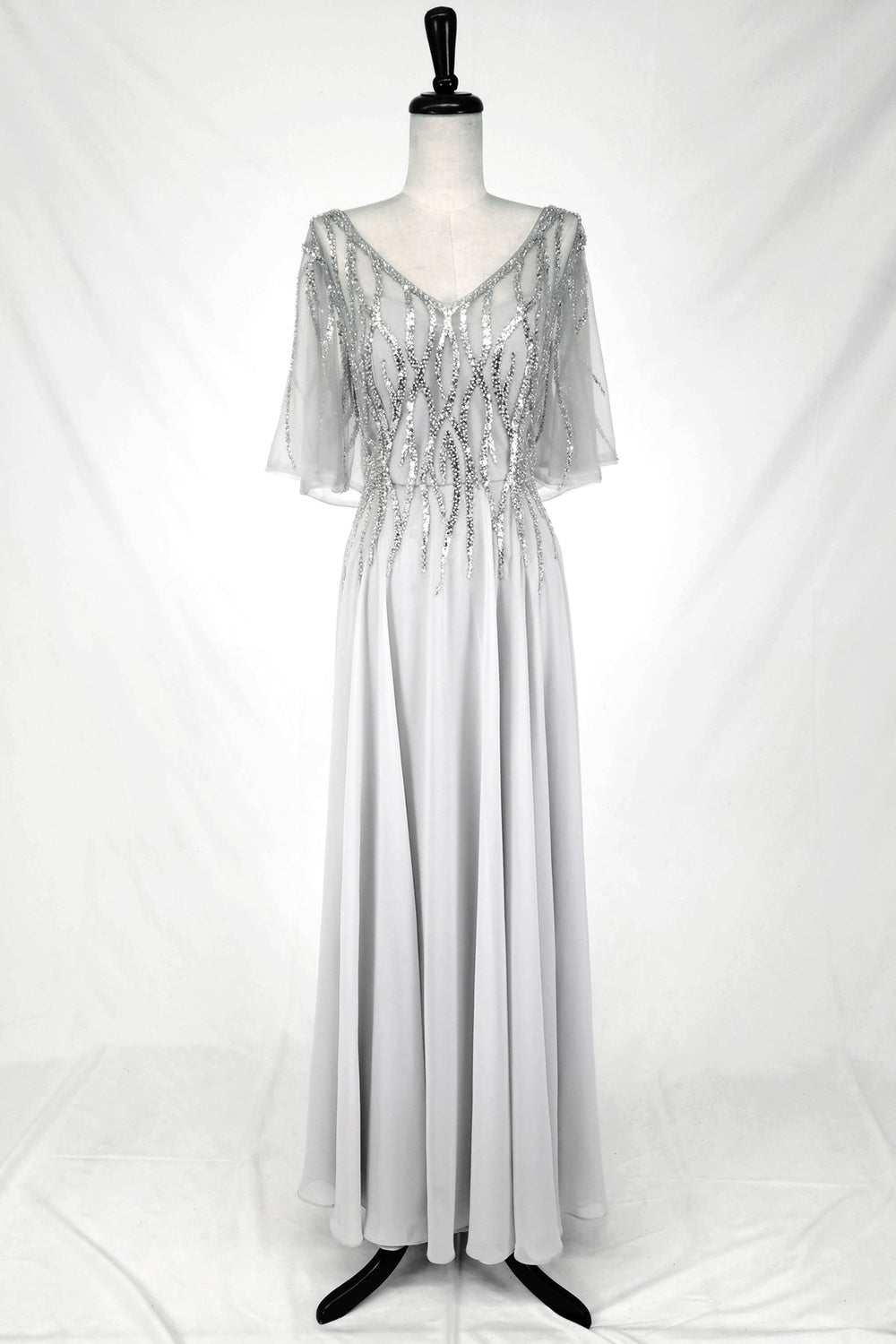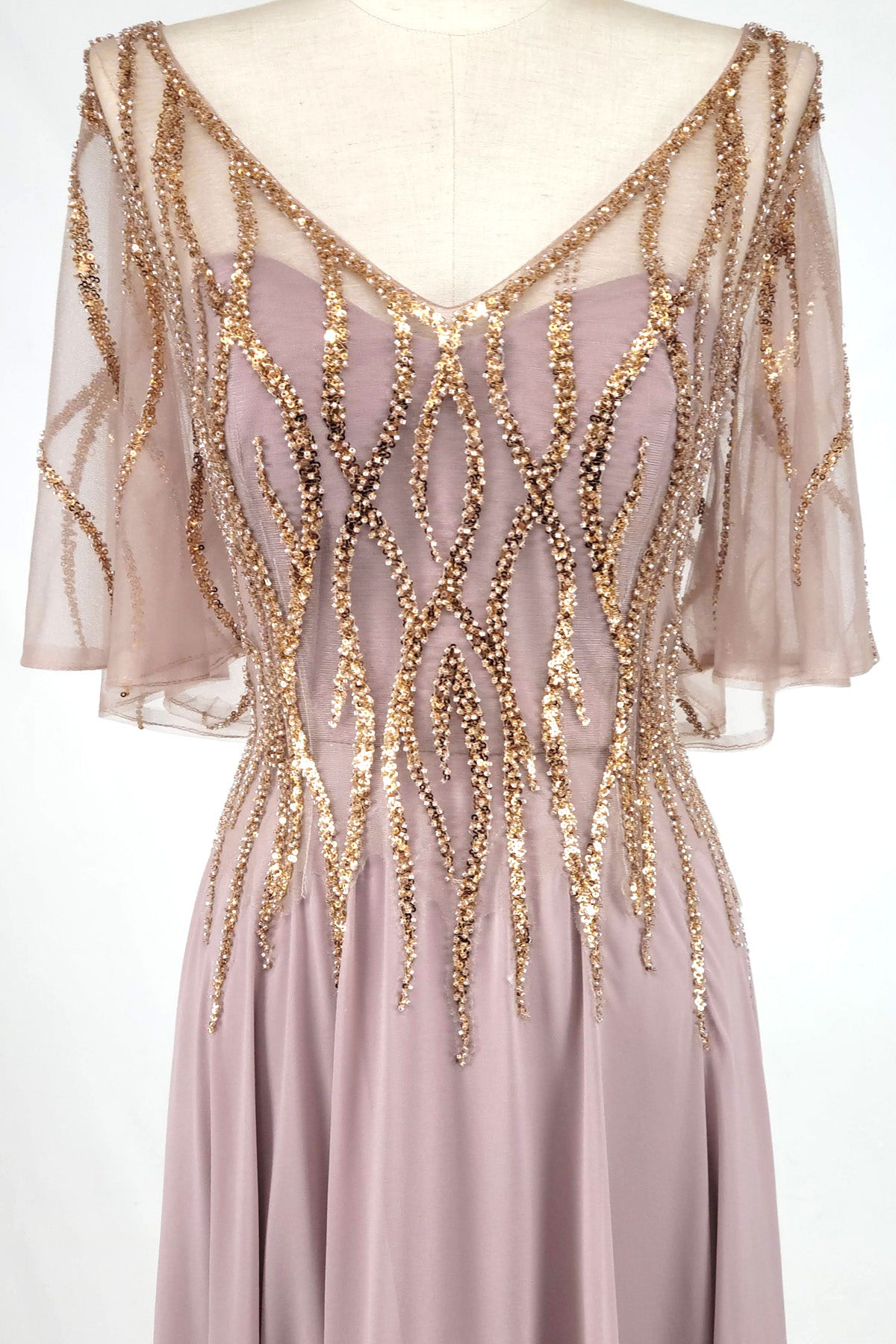 Vestido Largo con Escote en V Con Mangas Aplicaciones en Pedrería y Lentejuela (Varios Colores)
