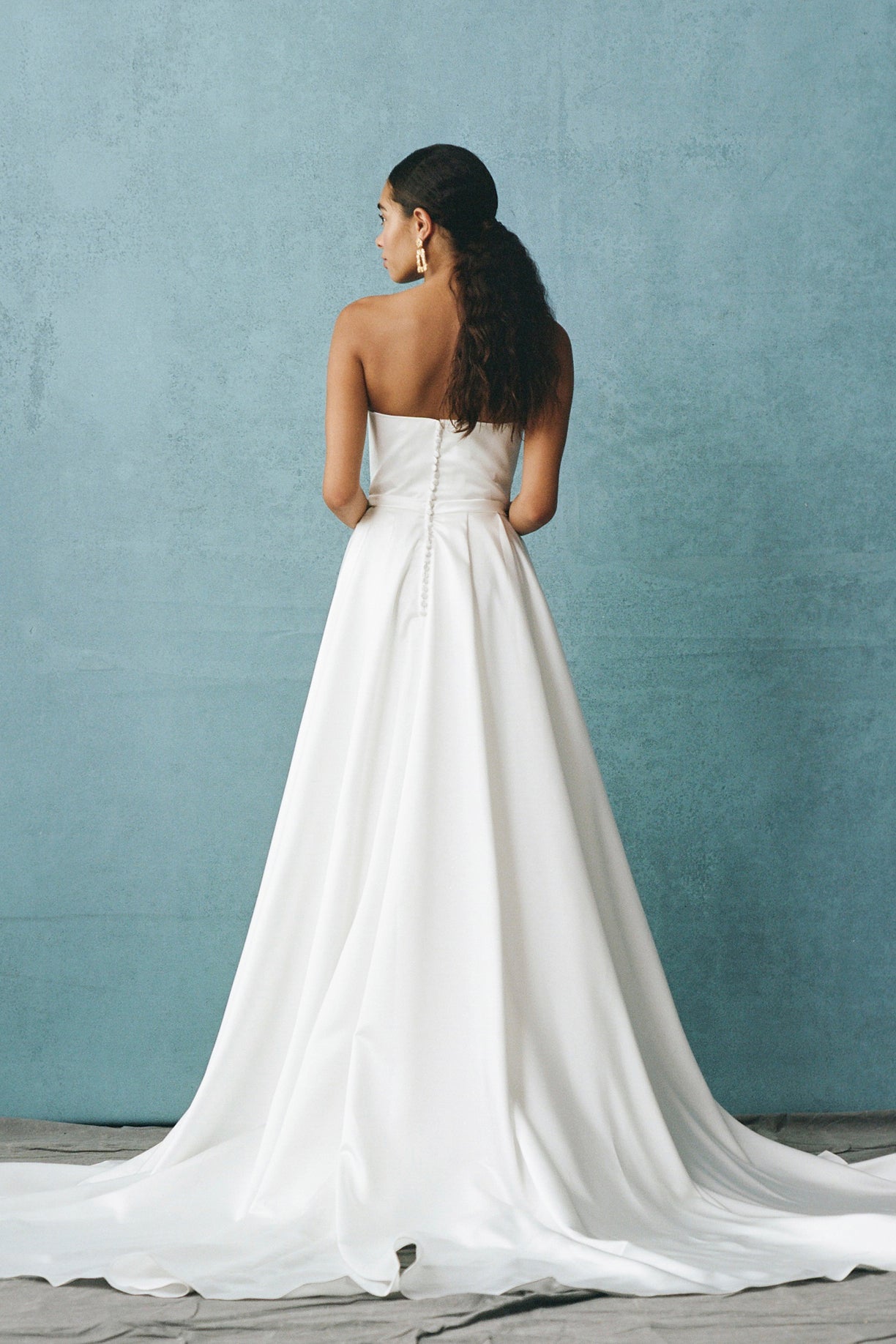 El vestido se entrega o envía en base a la talla seleccionada, el precio de la tienda en línea no incluye ajustes como bastilla, tirantes u otros.