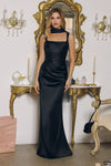 Luce un estilo refinado con este elegante vestido de satén, diseñado para favorecer con líneas limpias y un drapeado suave. Confeccionado en satén suave, este vestido largo hasta el suelo presenta un corpiño estructurado con un escote ligeramente contorneado que realza el escote. Los tirantes ajustables ofrecen un ajuste personalizable, mientras que la espalda tipo corsé con cordones proporciona sujeción y forma. Rematado con un pañuelo transparente extraíble para mayor elegancia, este vestido se adapta fácilmente tanto a veladas formales como a celebraciones de lujo.